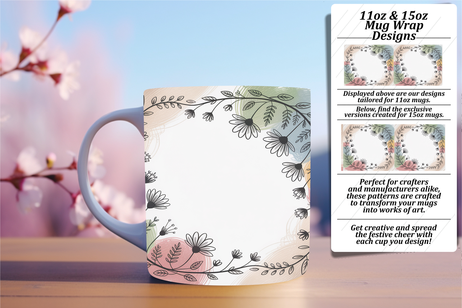 Charming 11oz Mug Wrap Png Design , Flowers