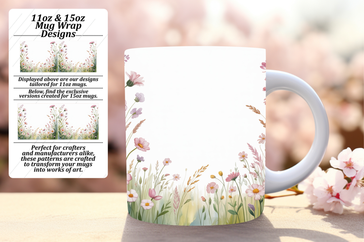 Lovely 15oz Mug Wrap Png Design , Flowers