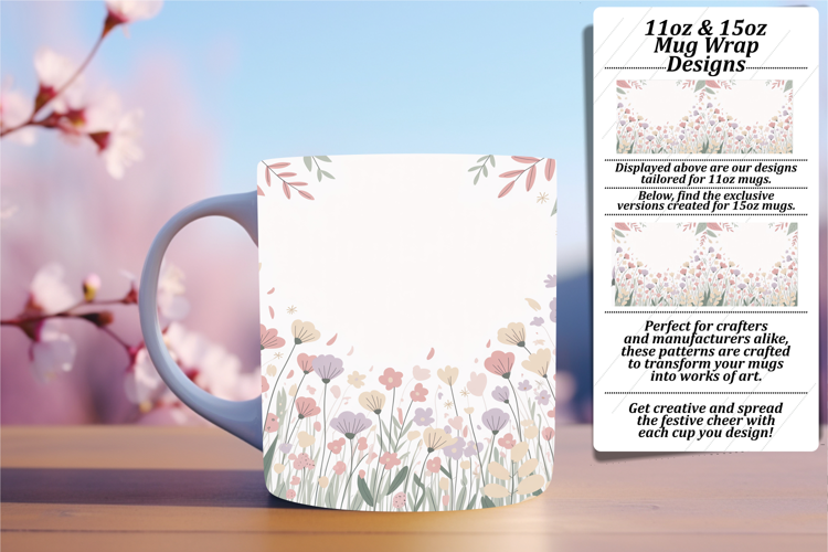 Delightful 15oz Mug Wrap Png Template , Flowers