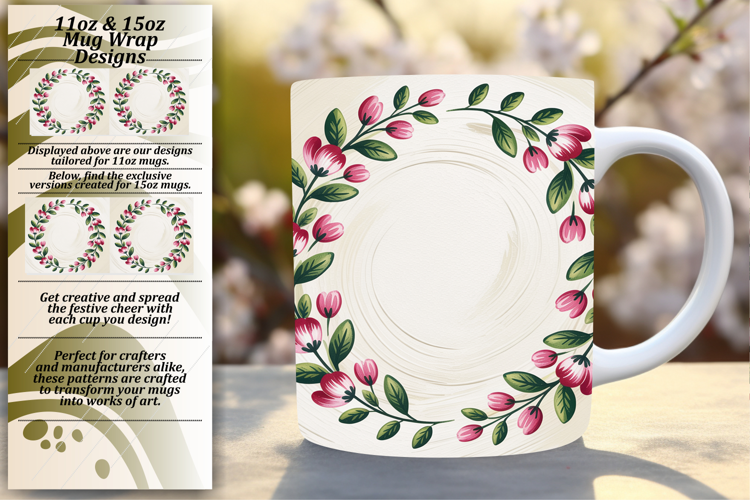 LUXURIOUS 11oz PNG Mug Wrap Template , Flowers