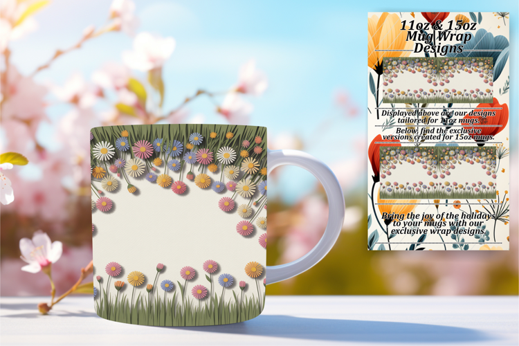 EXQUISITE 11oz Mug Wrap PNG Template , Flowers