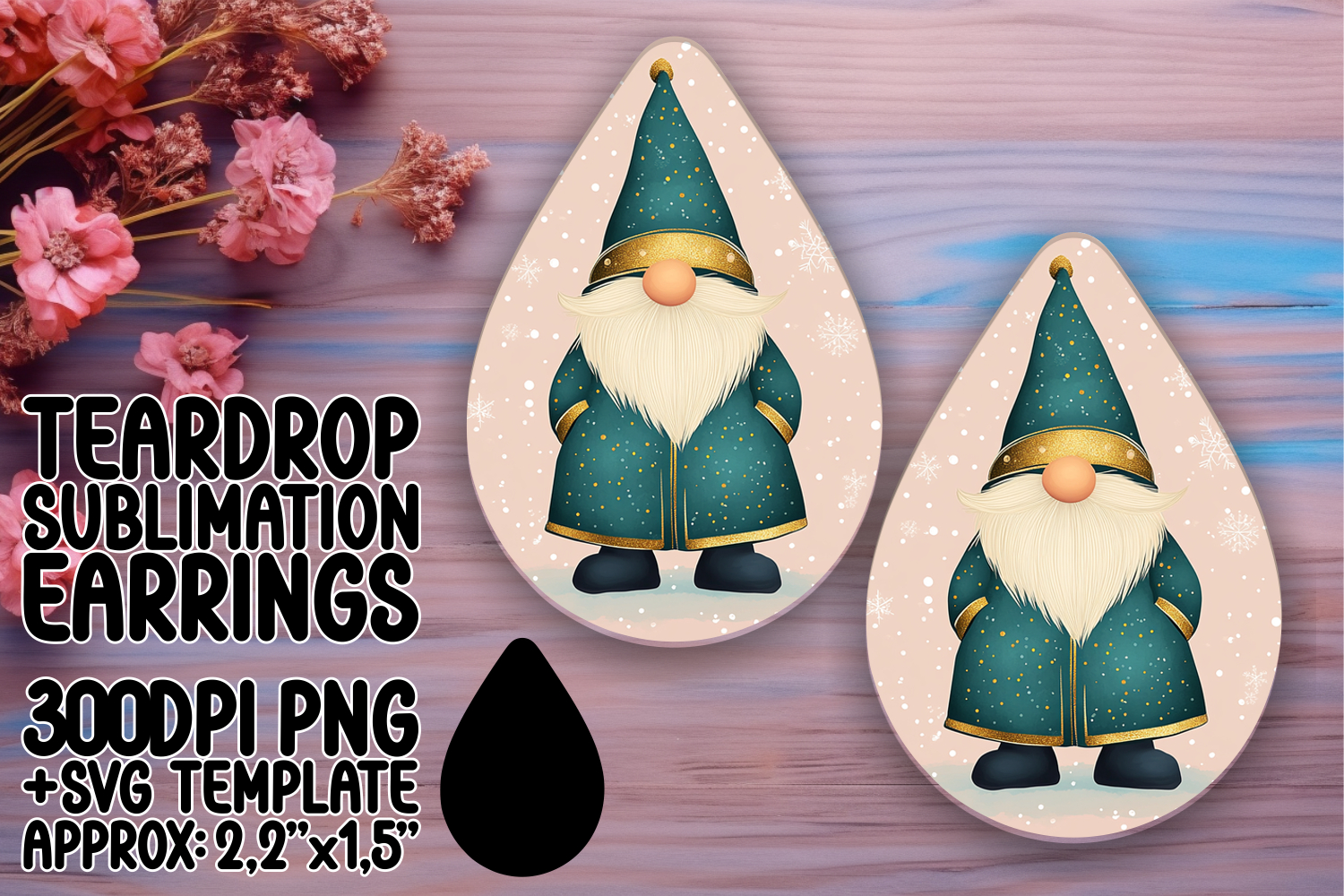 Playful Teardrop Earrings Sublimation Template , Gnome