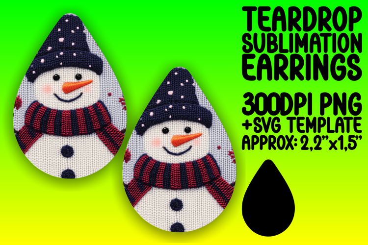 Chic Teardrop Sublimation Design for Earrings , Snowman example image 1