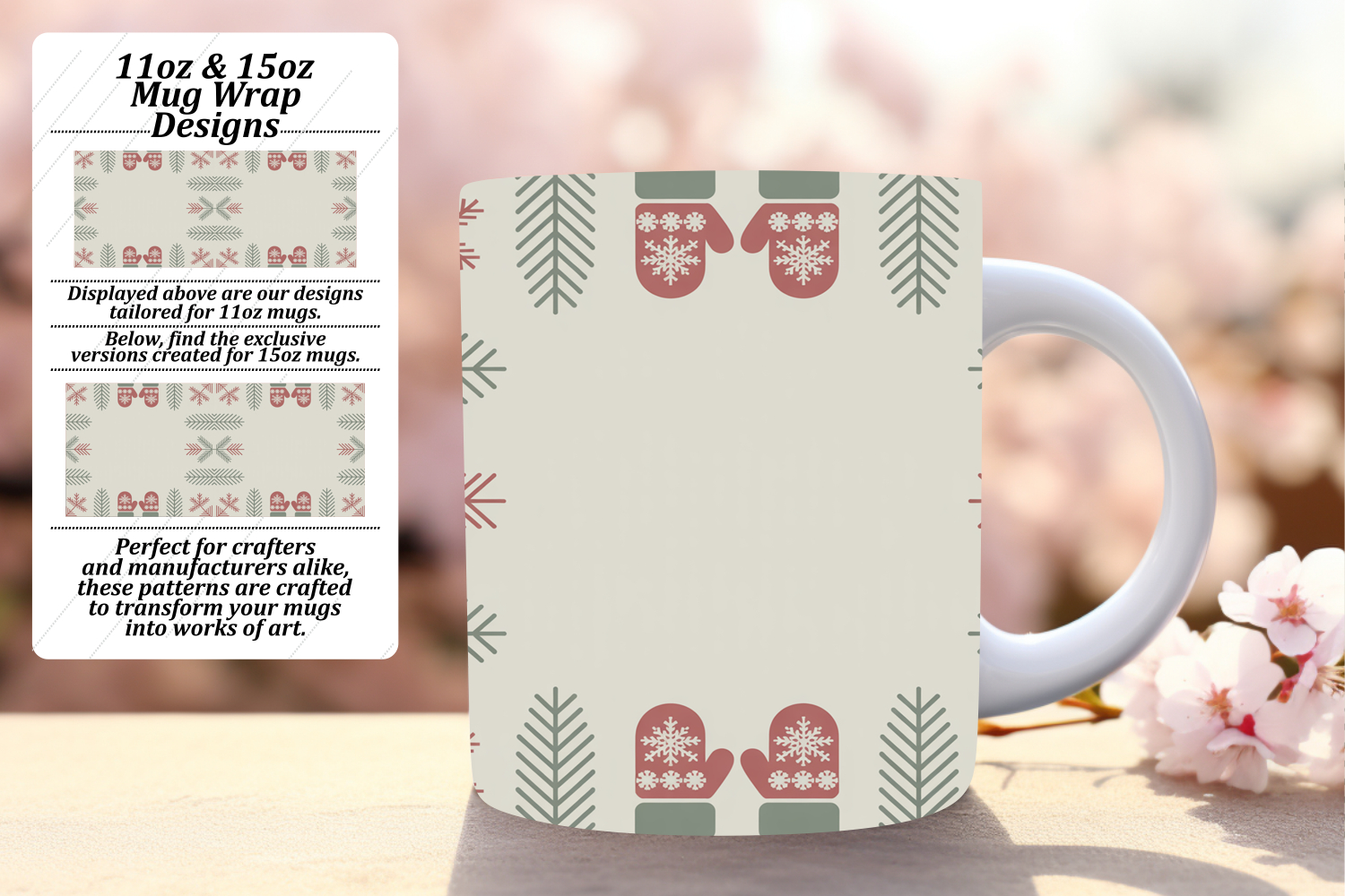 Creative 11oz Mug Wrap Png Design , Christmas