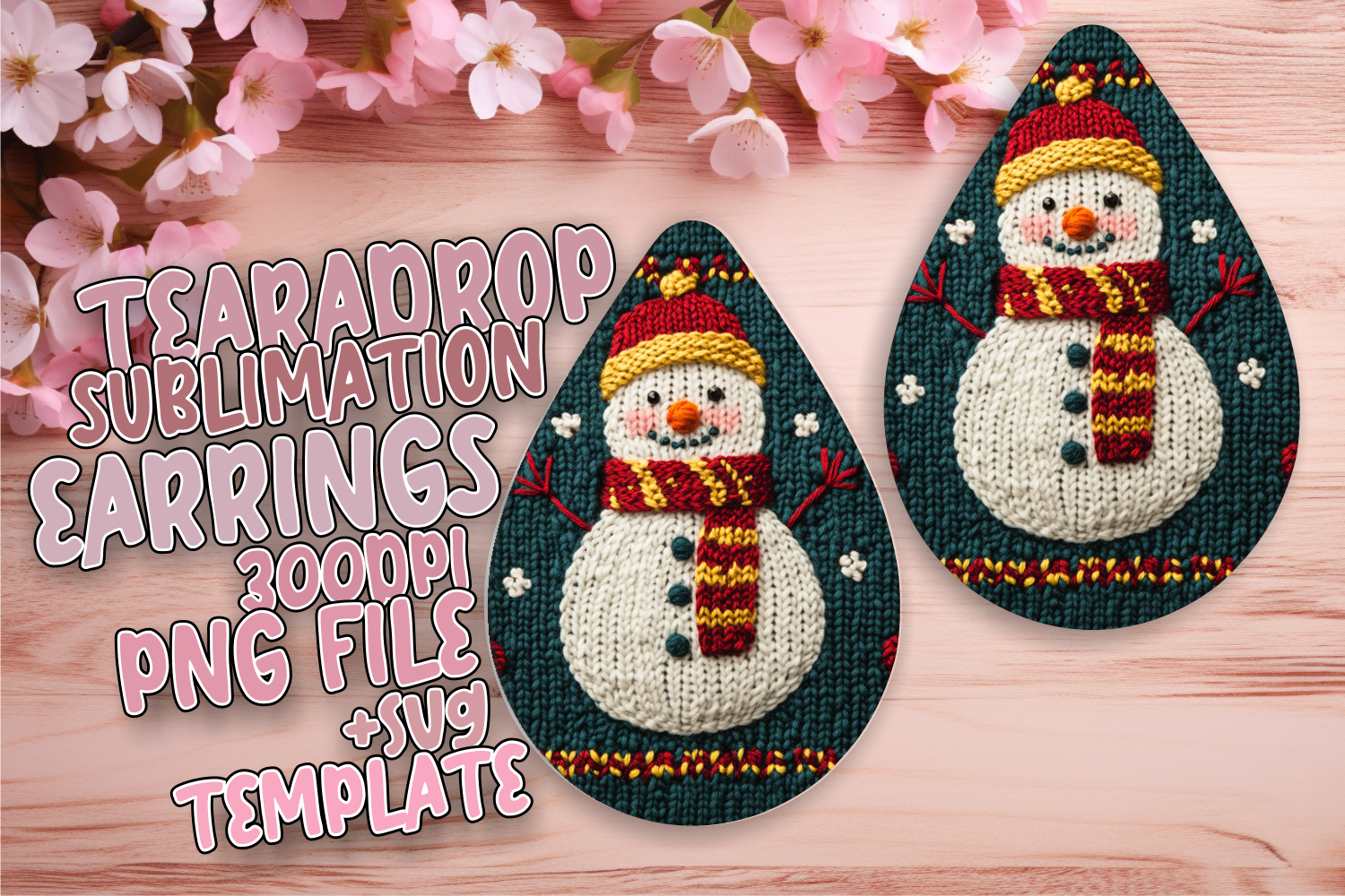 Artful Teardrop Earrings Sublimation Design , Snowman