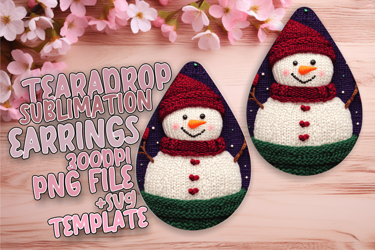 Similar Design Products to Unique Teardrop Earrings Artwork for Sublimation , Snowman