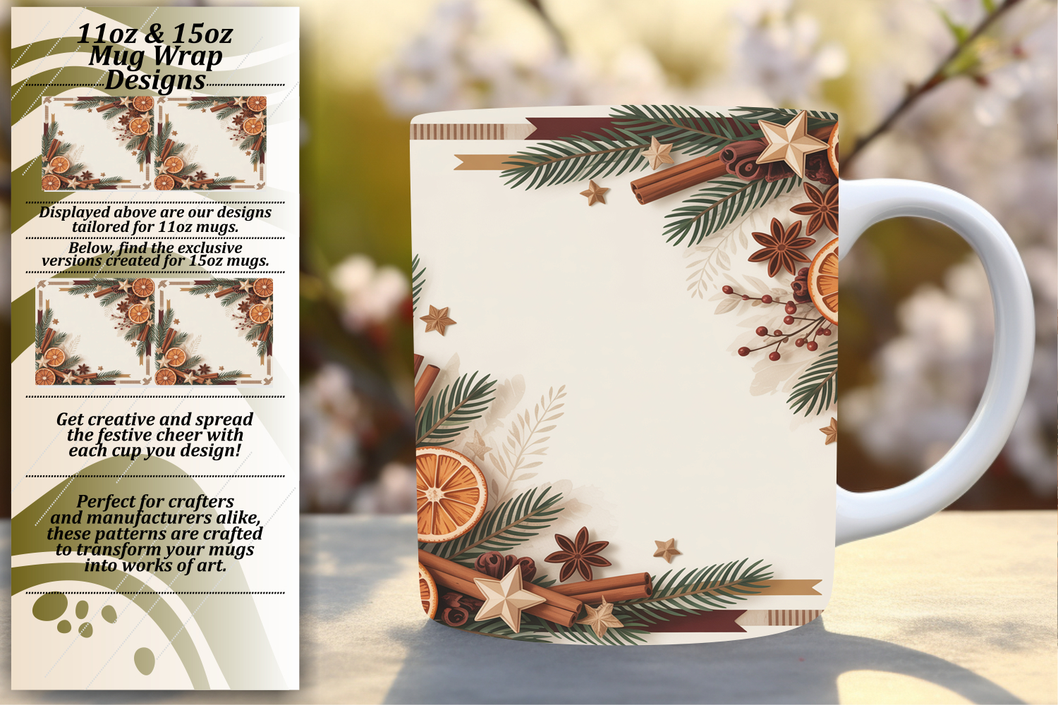 Elegant 15oz Mug Wrap Png Artwork , Christmas