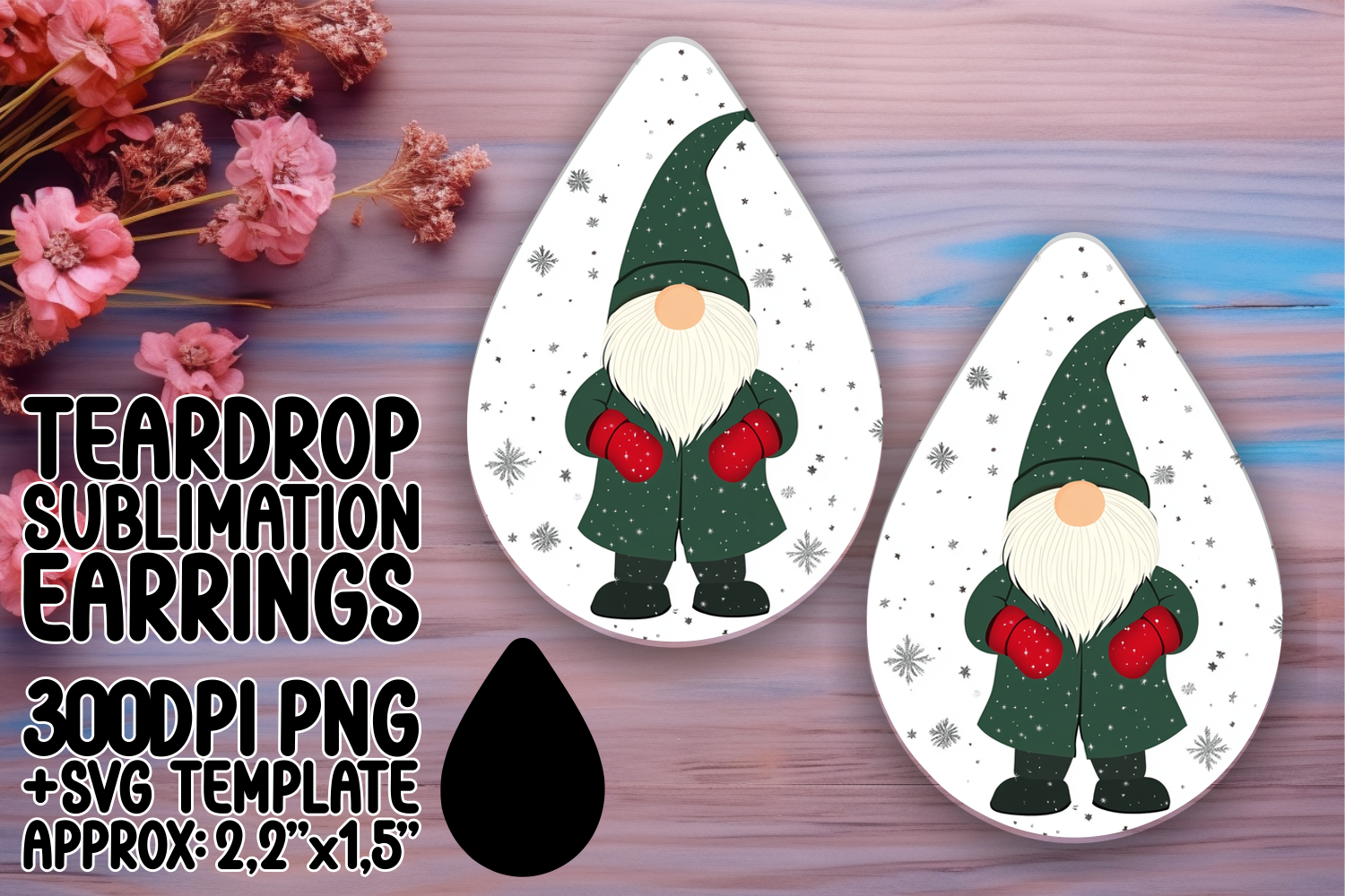 Lovely Teardrop Earrings Sublimation , Gnome example image 1