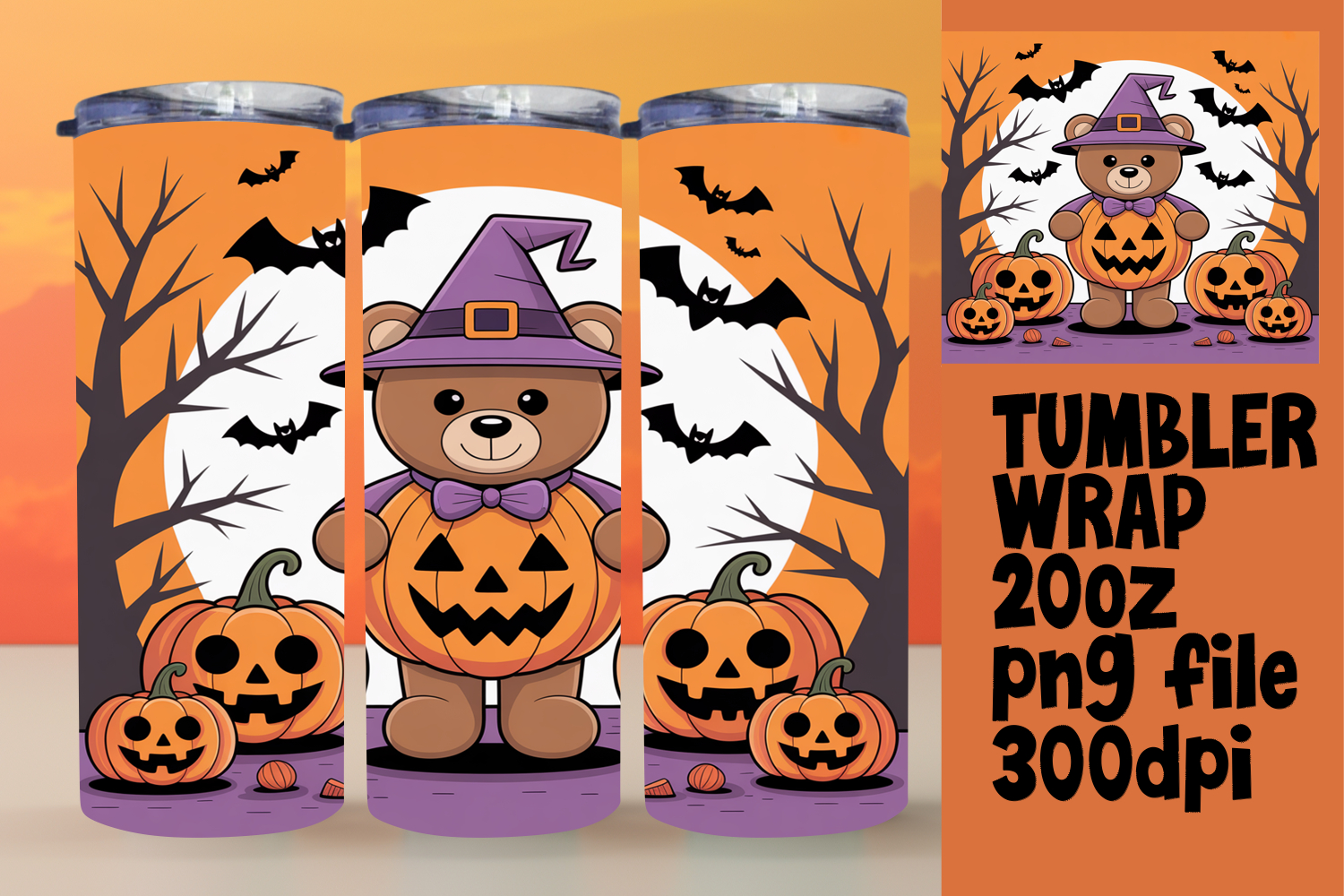 VIBRANT 20oz Tumbler Wrap for Sublimation , Cute Bear example image 1