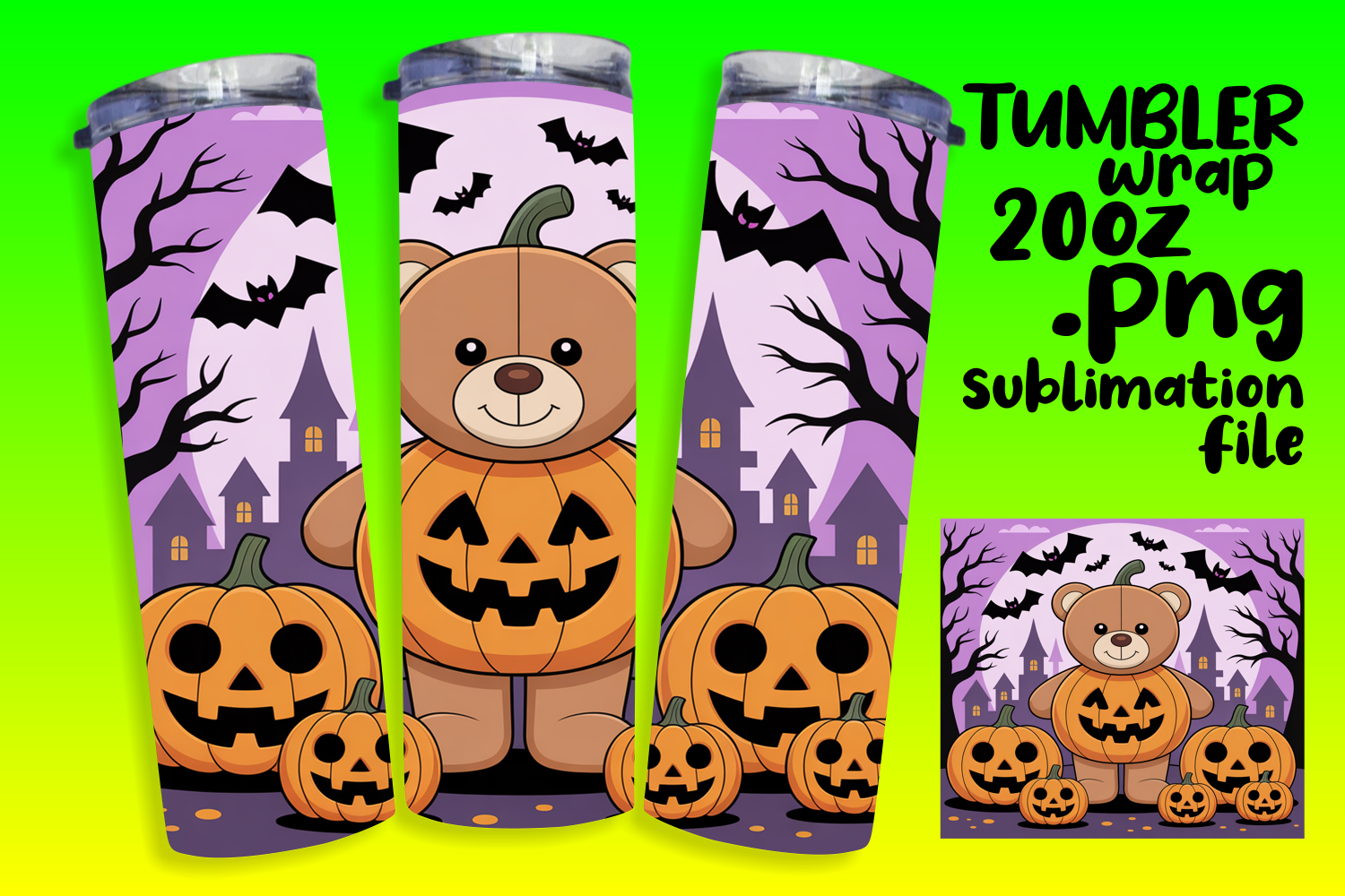 SLEEK 20oz Sublimation Tumbler Template , Cute Bear