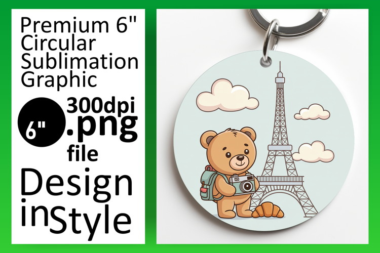 Dynamic Keychain Round Design PNG , Cute Bear example image 1