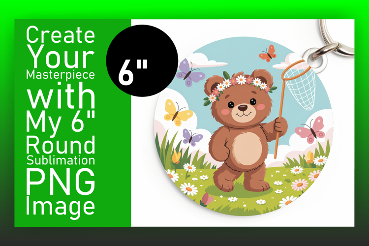 Whimsical Round Design Car Coaster Template , Cute Bear example image 1