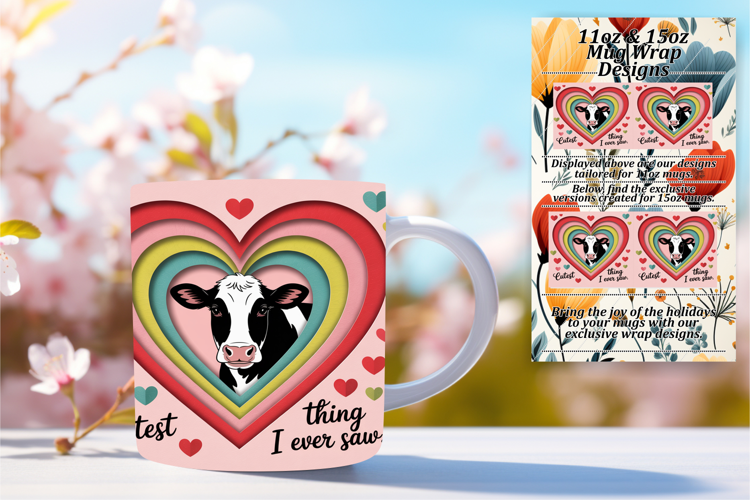 Charming 15oz Mug Wrap Png Artwork , Cute Cow