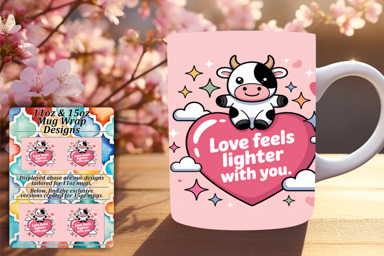 Sweet 15oz Mug Wrap Png Artwork , Cute Cow