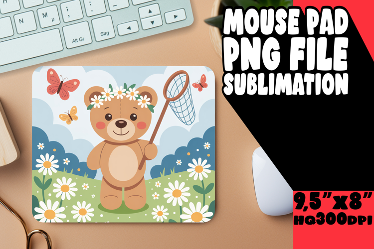 VIBRANT MOUSE PAD SUBLIMATION PNG, Cute Bear