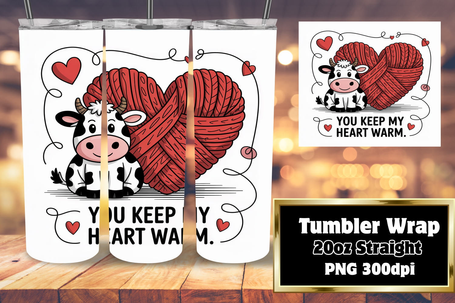 20oz Sublimation Template for Creatives , Cute Cow