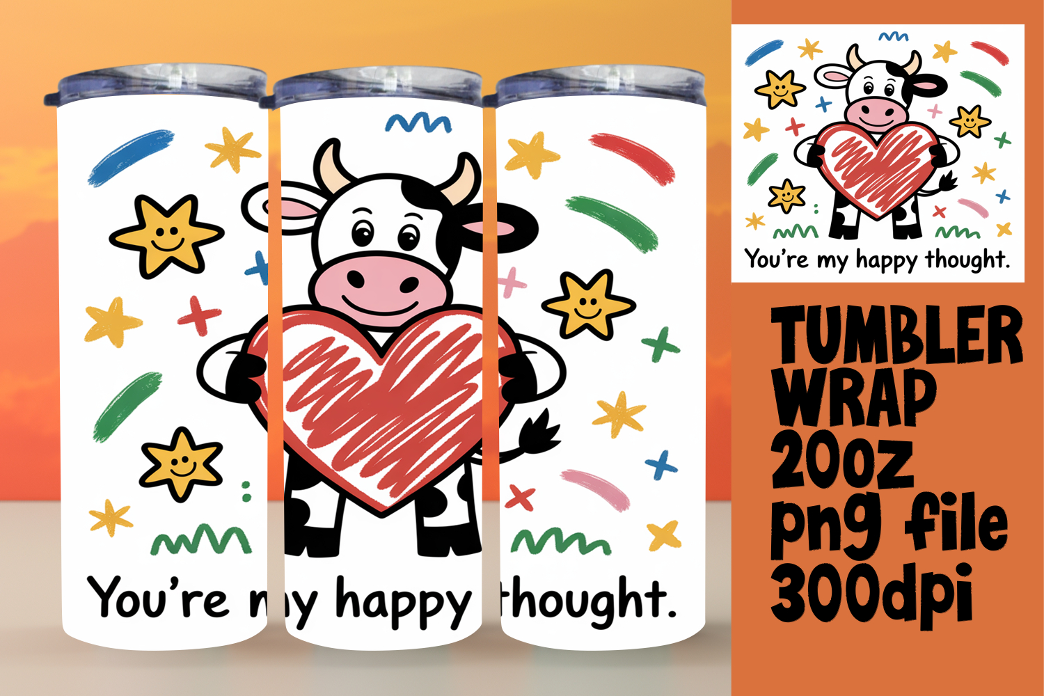 Amazing 20oz Tumbler Wrap Download , Cute Cow