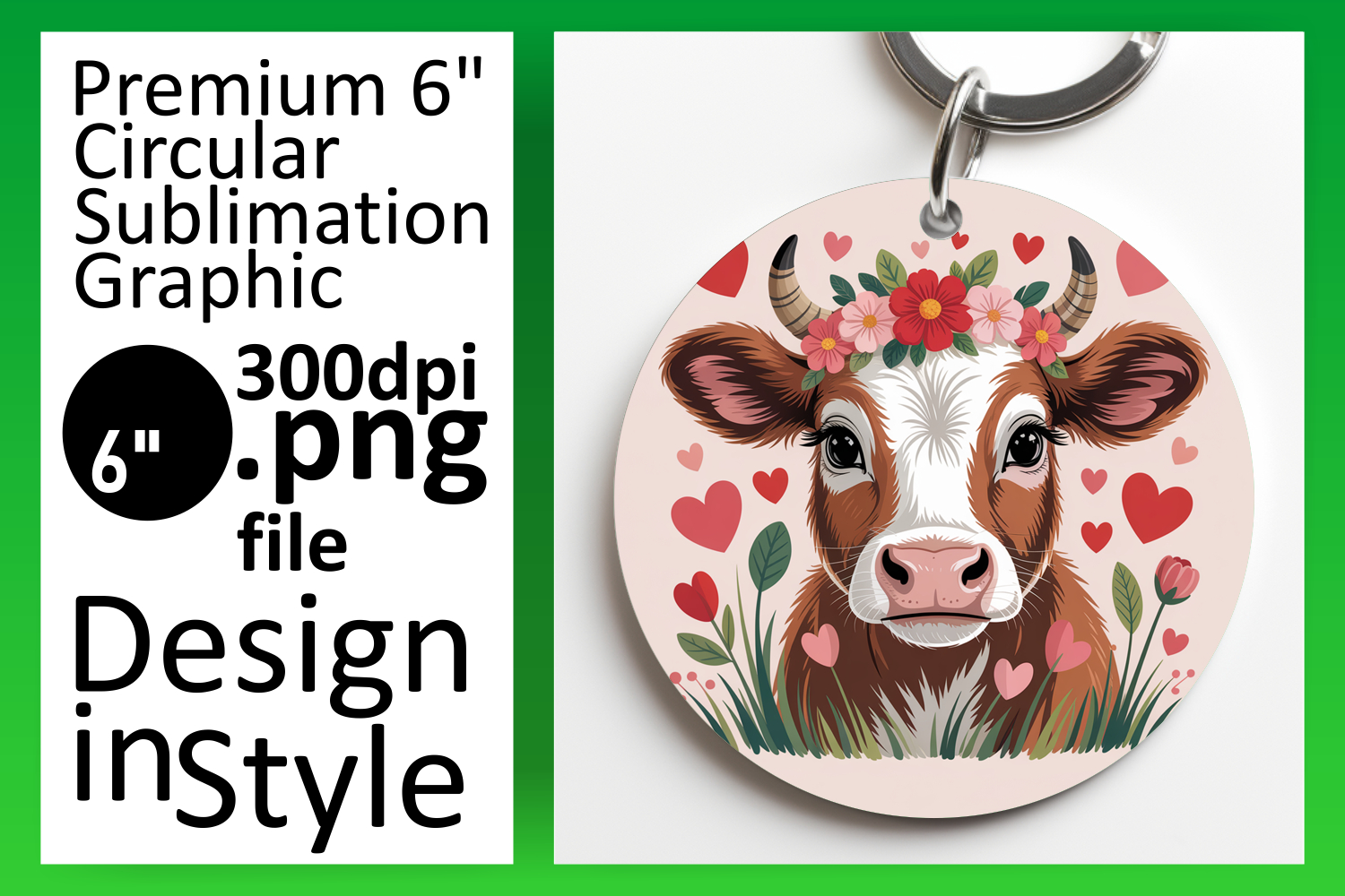 Elegant Keychain Circle Design PNG , Valenines Animals example image 1