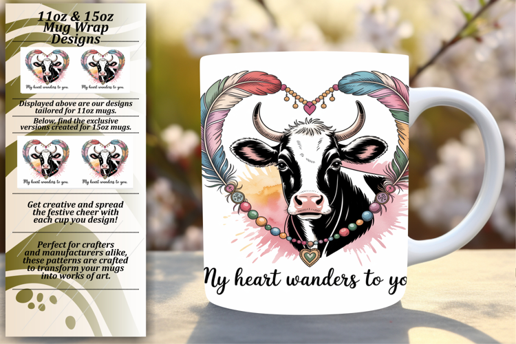 Elegant 11oz Mug Wrap Png Design , Cute Cow example image 1