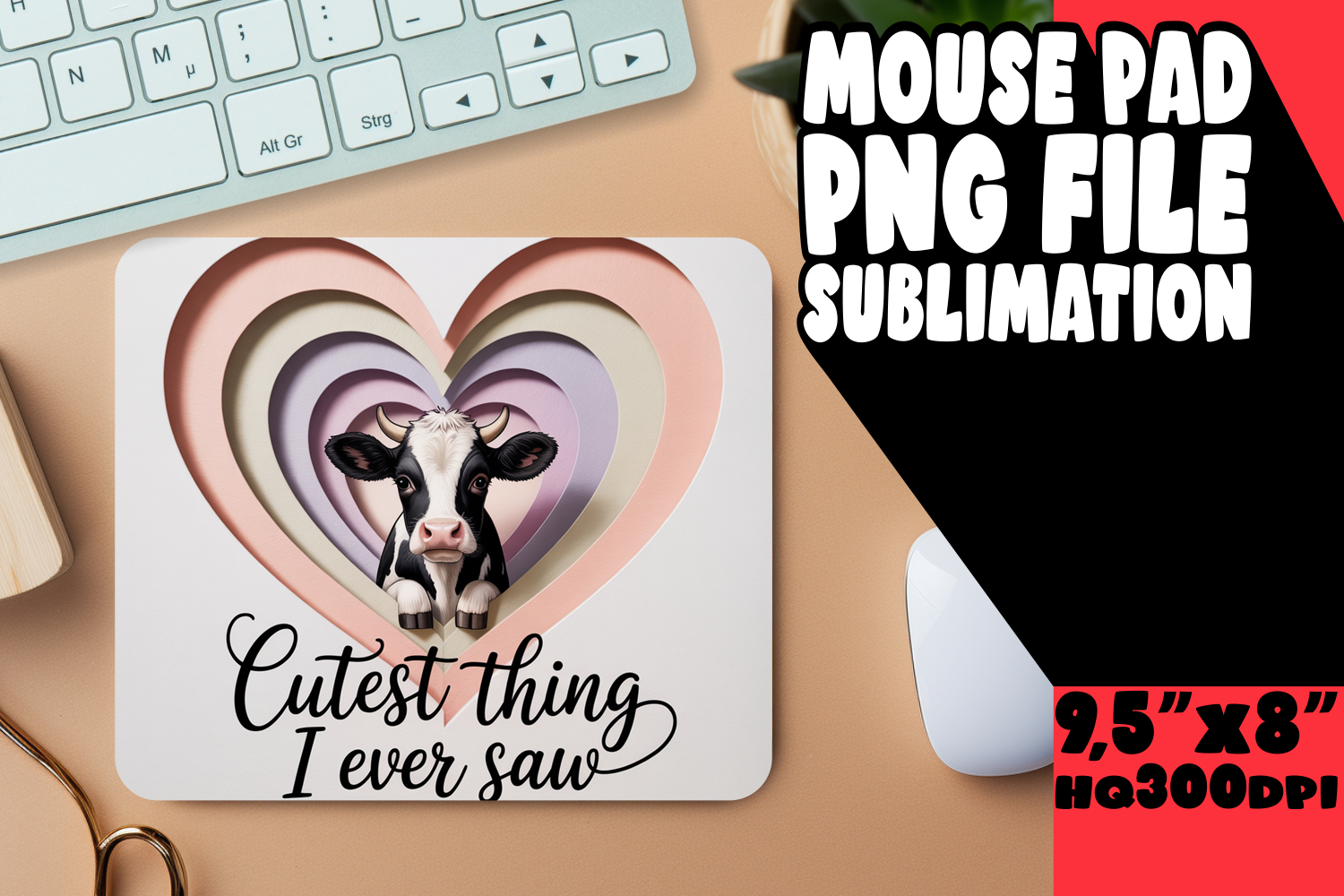 Timeless Mouse Pad Sublimation PNG, Cute Cow