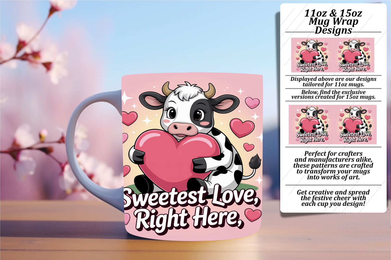 Glamorous 15oz Mug Wrap Png Design , Cute Cow