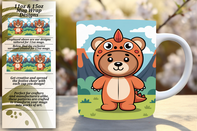 Gift 15oz Mug Wrap Png Design , Cute Bear