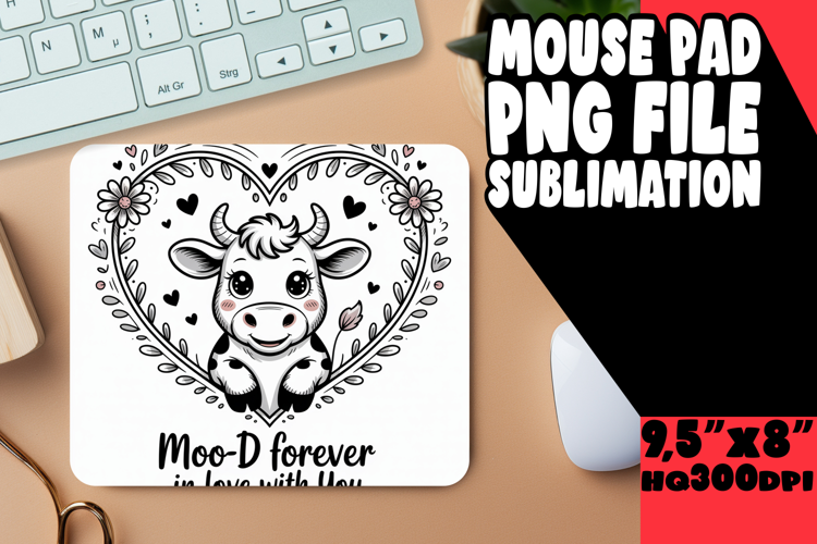 JOYFUL MOUSE PAD PNG ART, Cute Cow example image 1