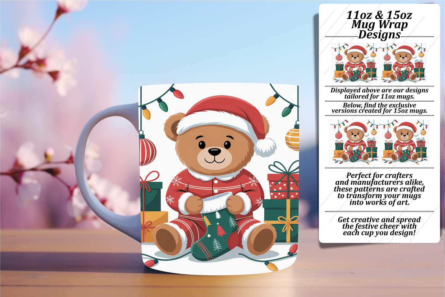 Festive 11oz Mug Wrap Png Artwork , Cute Bear