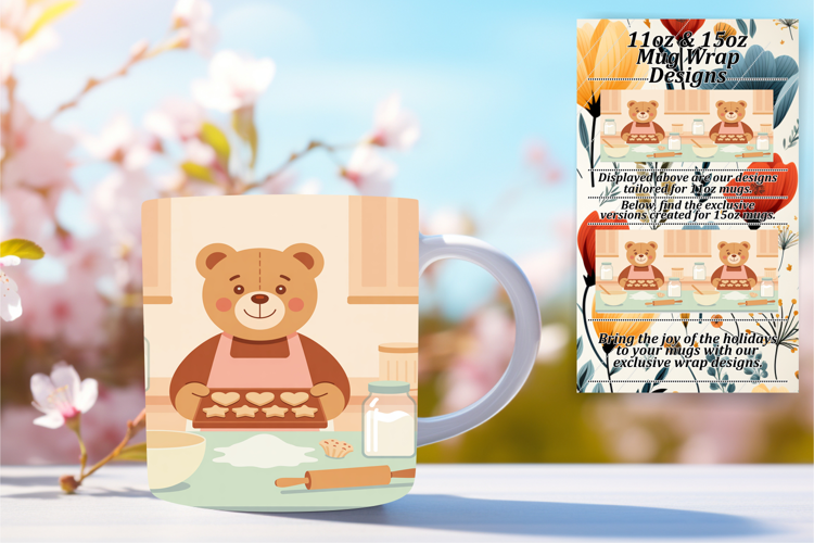 Elegant 15oz Mug Wrap Png Artwork , Cute Bear
