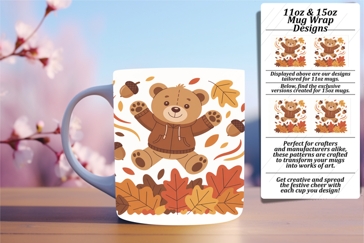 Unique 15oz Mug Wrap Png Design , Cute Bear