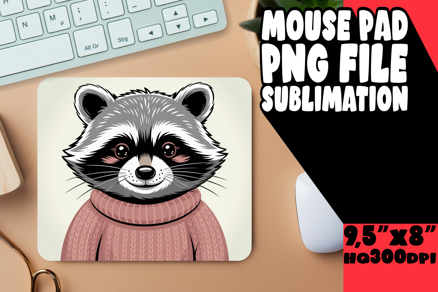 Mouse Pad Office Supplies Cute Animals Png Sublimation Design Raccoon Flowers Sublimation Printing Raccoon Design Mouse Pad Design Mouse Mat Blooming Raccoon