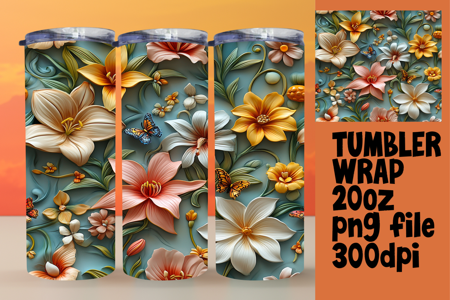 20oz Tumbler Template for Unique Gifts , 3D Flower example image 1