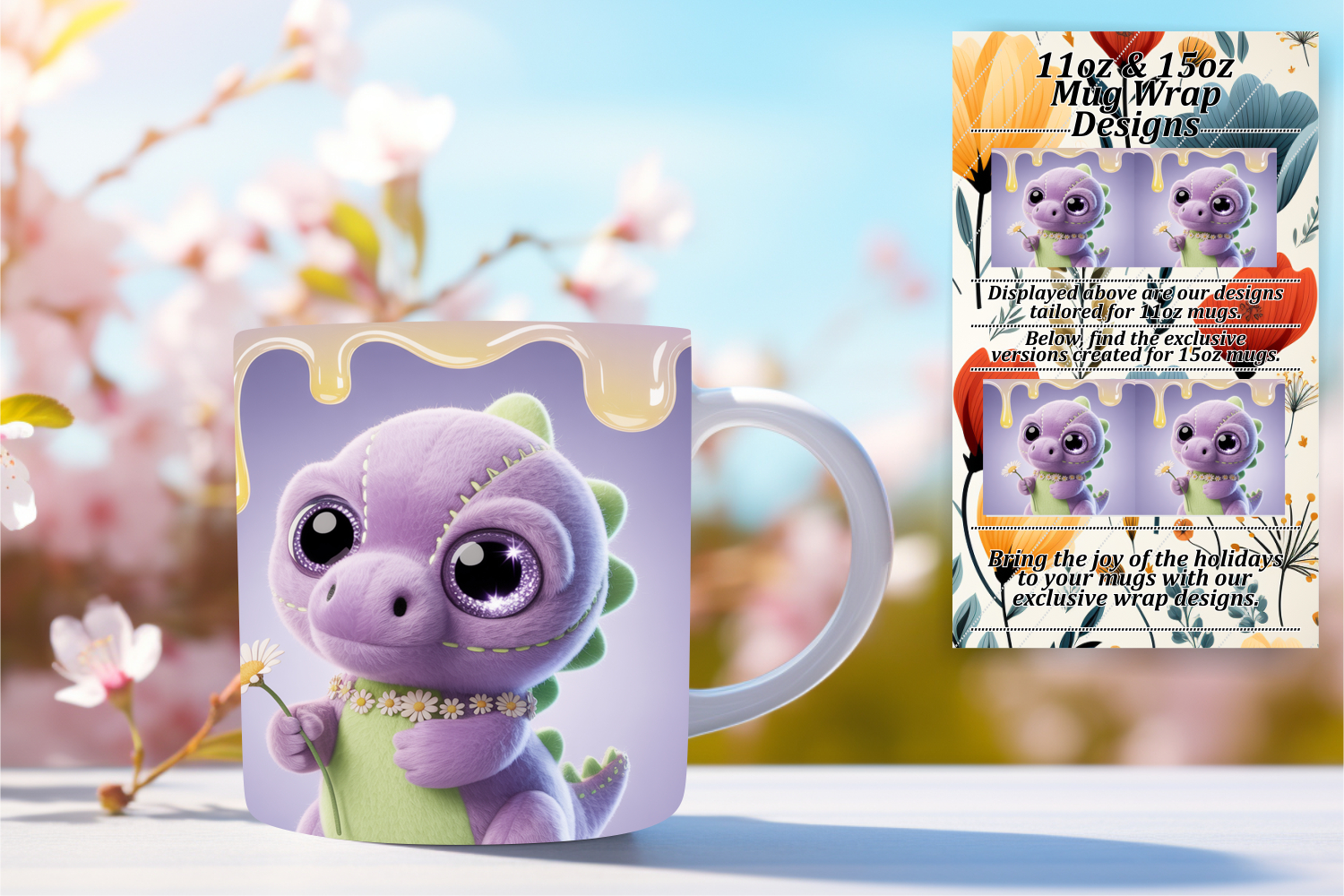Similar Design Products to Lovely 15oz Mug Wrap Png Template , Cute Dino