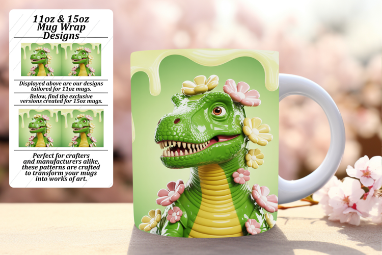 Dazzling 15oz Mug Wrap Png Artwork , Cute Dino