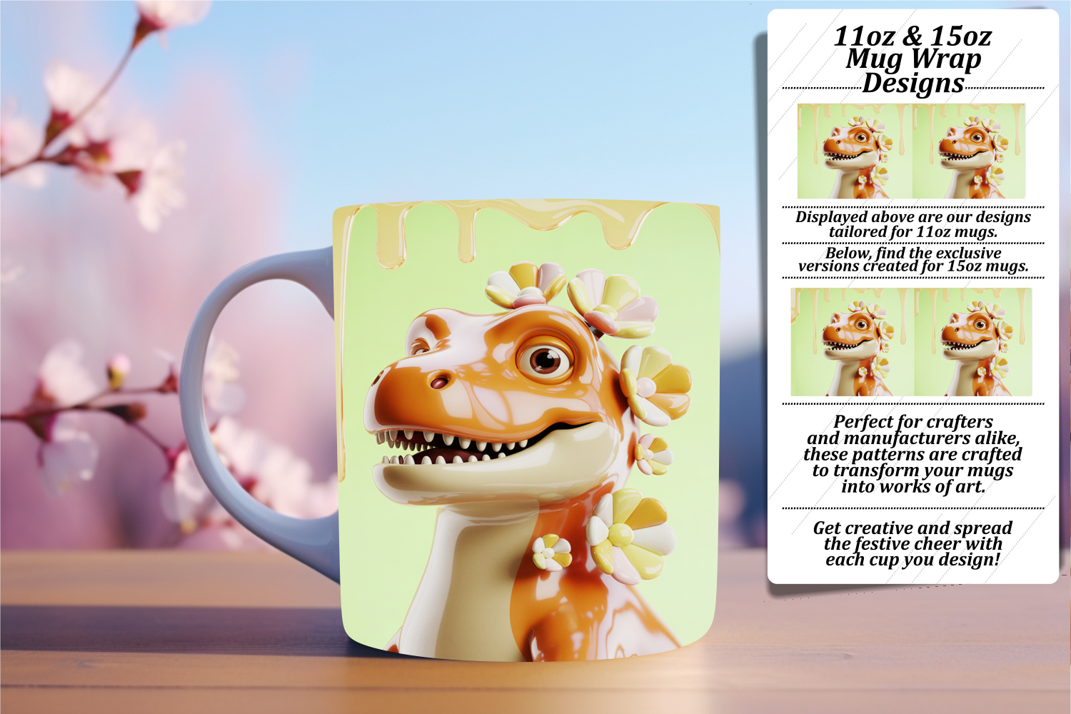 Sophisticated 15oz Mug Wrap Png Design , Cute Dino