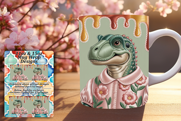 Similar Design Products to Artful 11oz Mug Wrap Png Template , Cute Dino