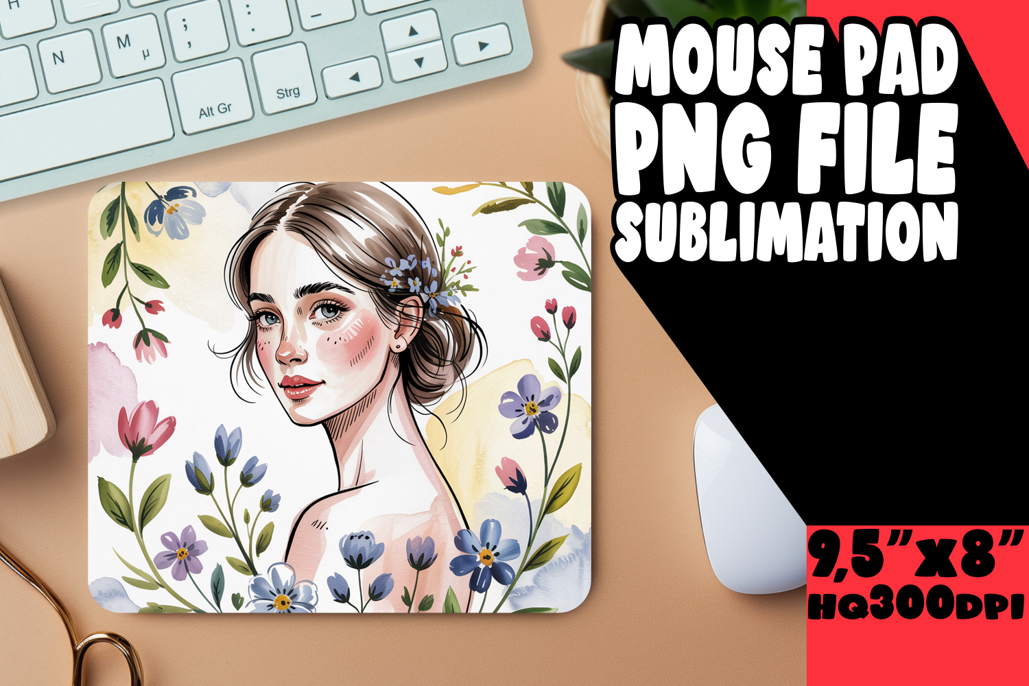 Similar Design Products to WHIMSICAL mouse PAD PNG Design, Beauty Woman