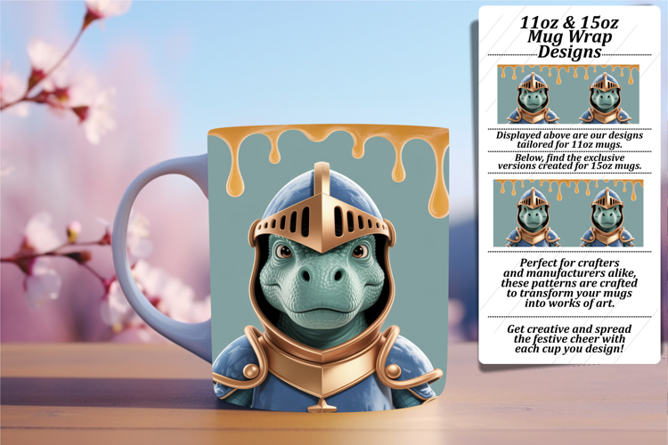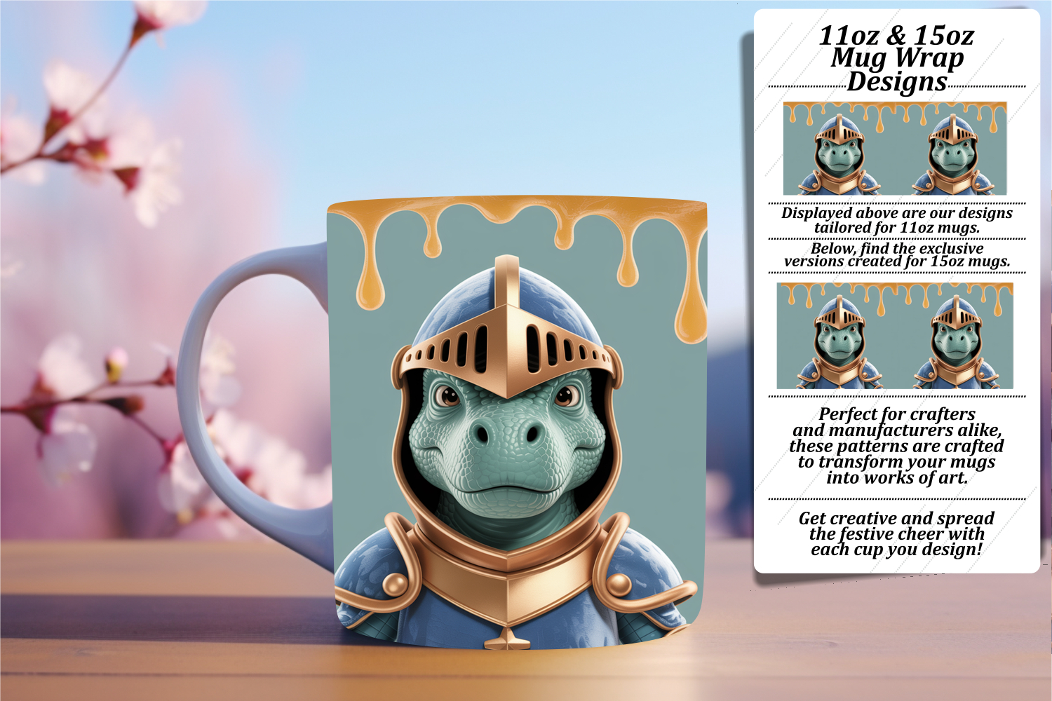Serene 15oz Mug Wrap Png Design , Cute Dino