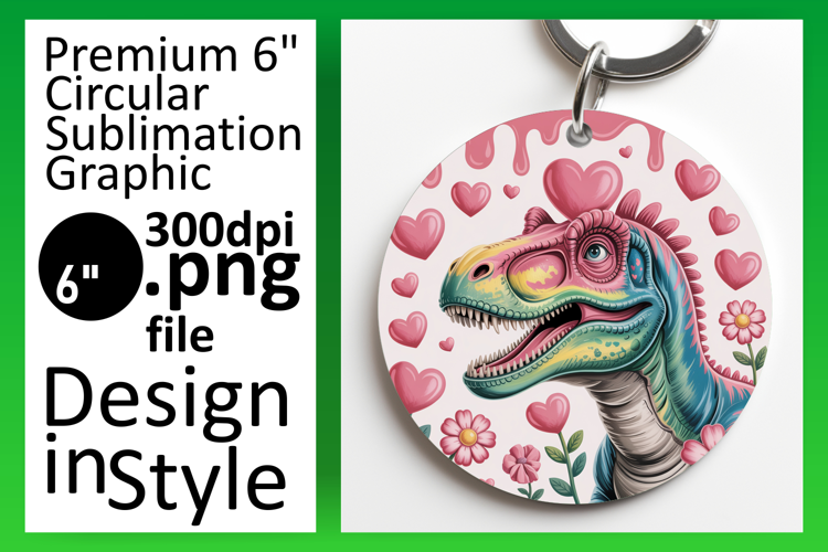 Chic Circle PNG Keychain Design , Cute Dino example image 1