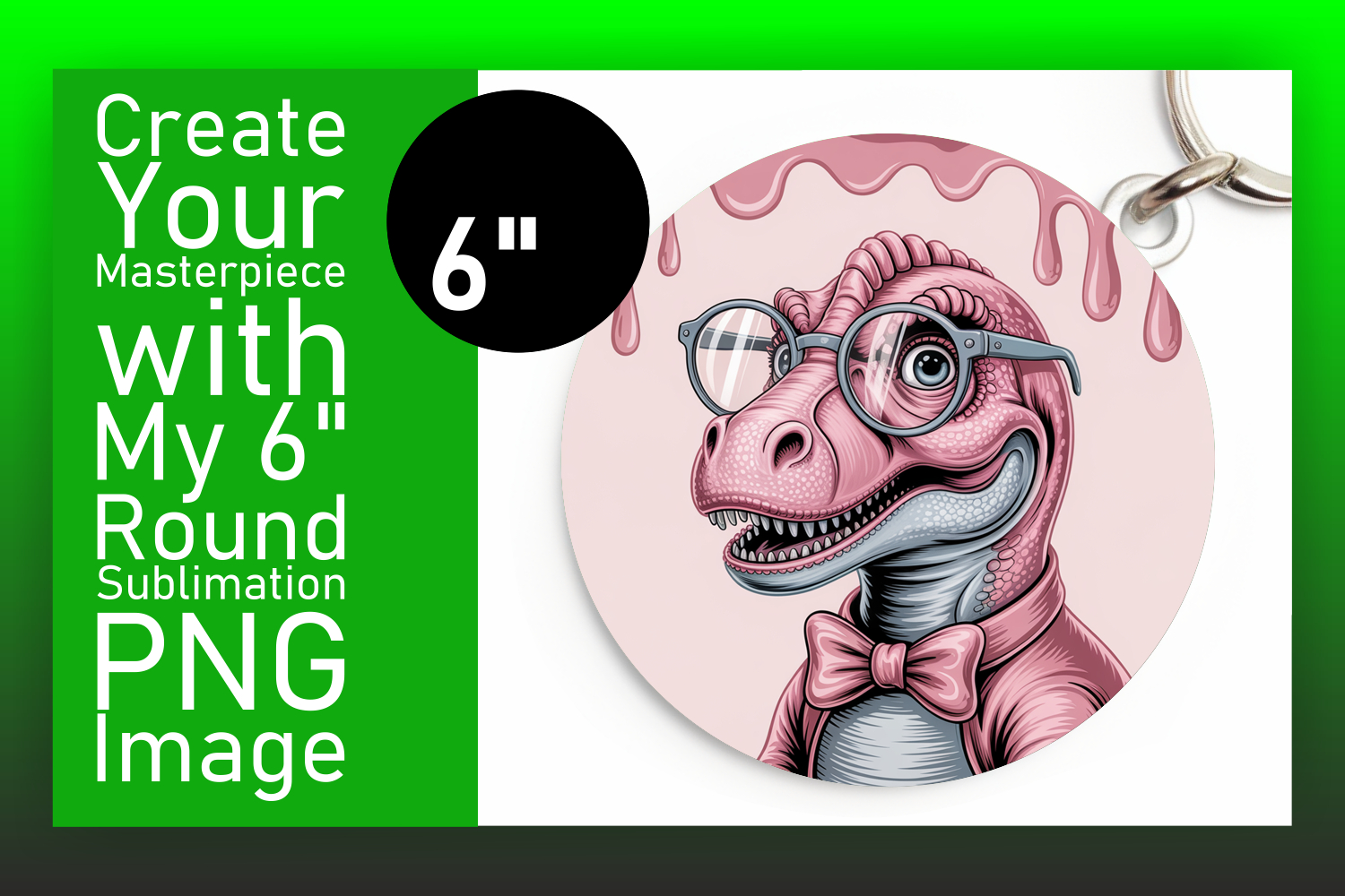 Lovely Round Design for Sublimation , Cute Dino example image 1