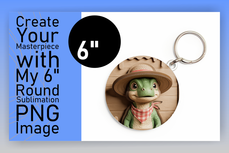 Stylish Round Design Keychain Template , Cute Dino
