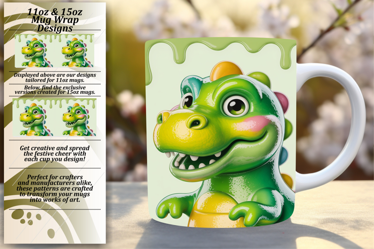 Creative 11oz Mug Wrap Png Artwork , Cute Dino