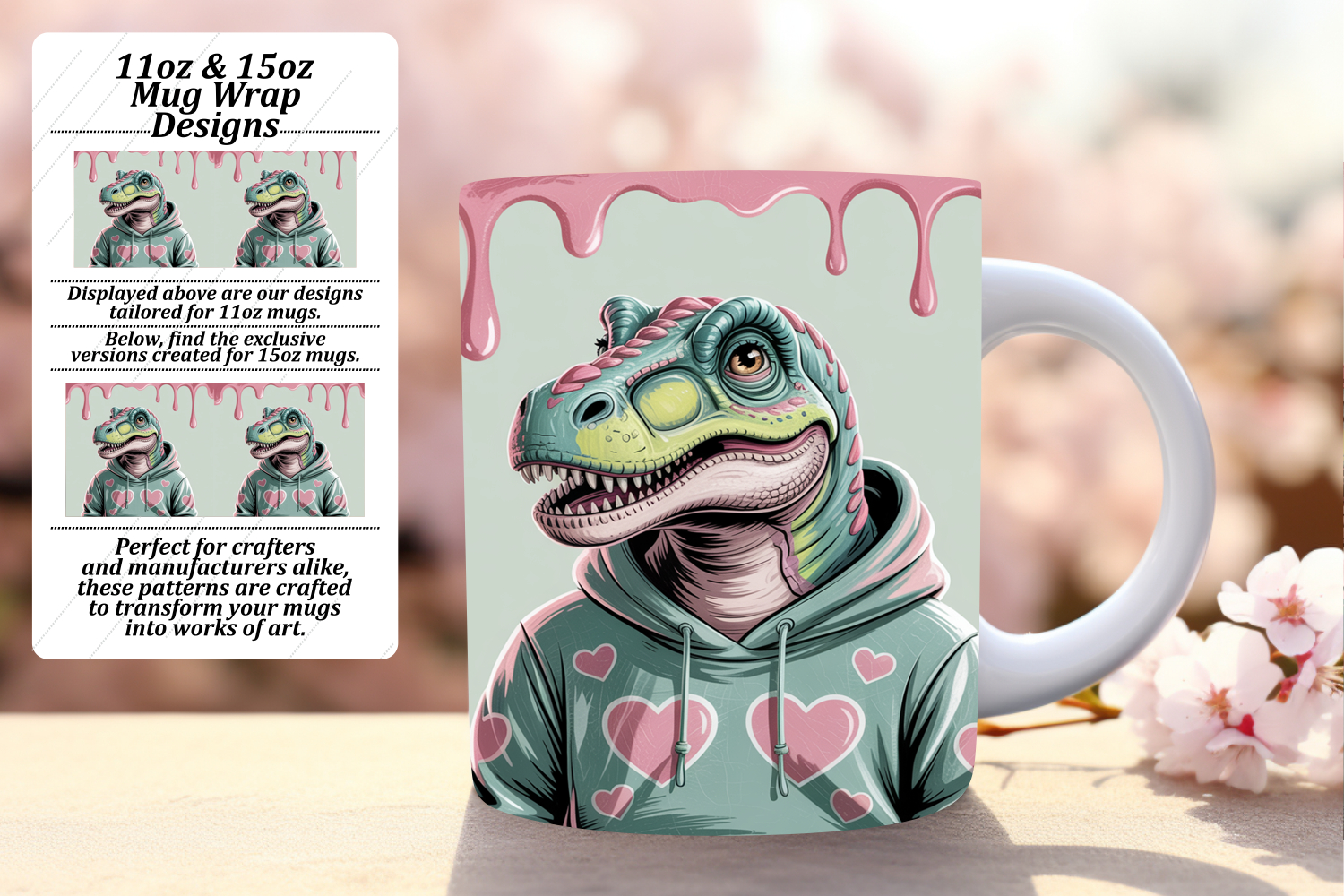 Delightful 15oz Mug Wrap Png Template , Cute Dino example image 1