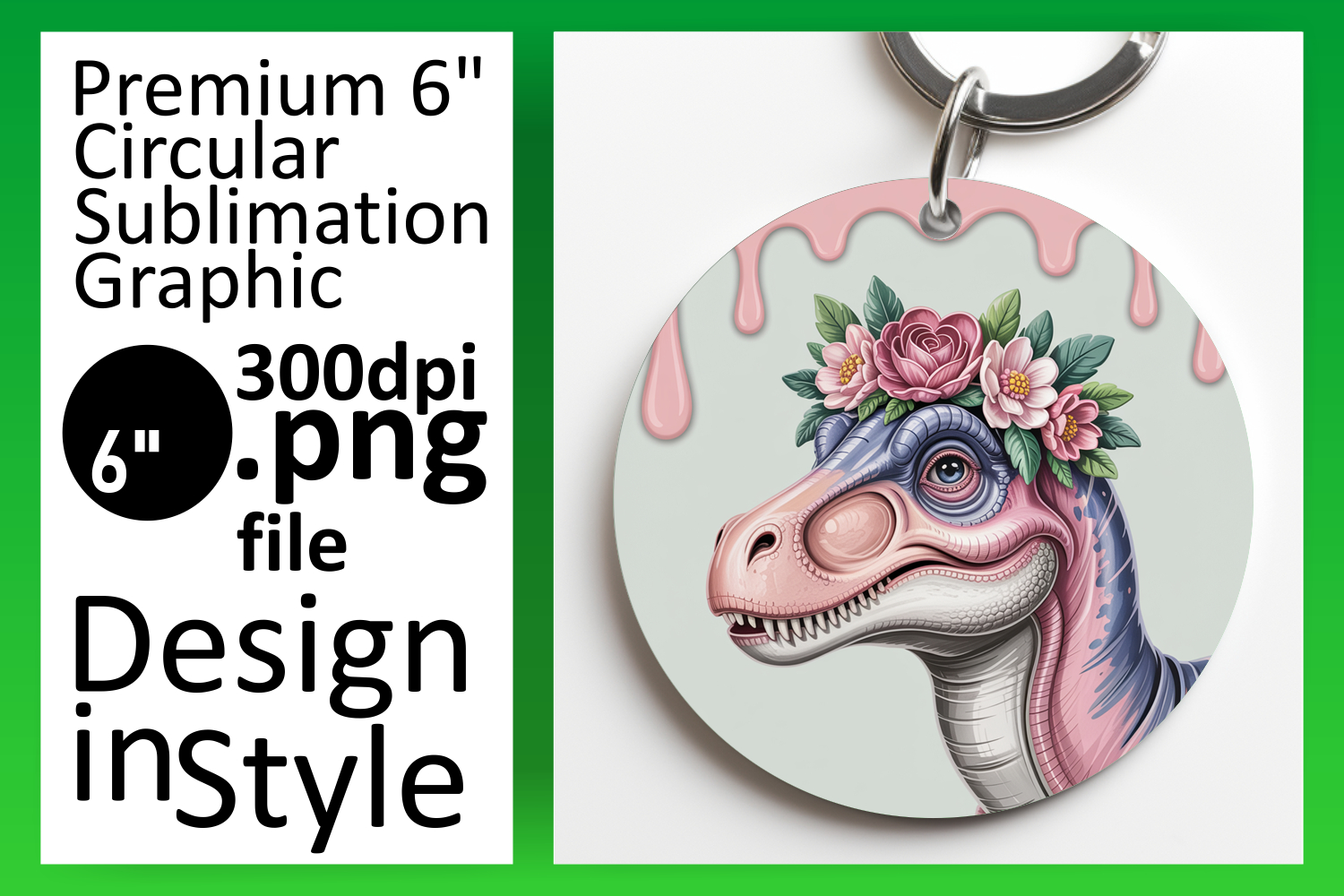 Artistic Keychain Circle Design PNG , Cute Dino example image 1