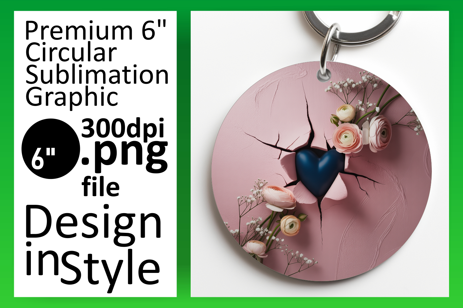 Elegant Keychain Round Design Template , 3D Heart example image 1