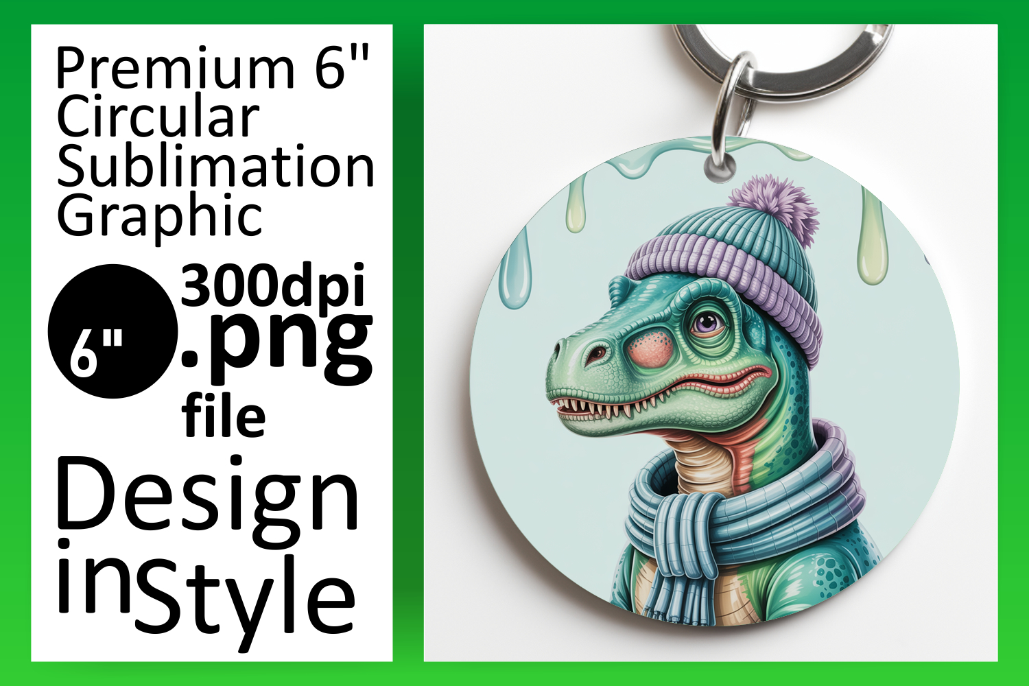 Elegant Round Design for Keychains , Cute Dino