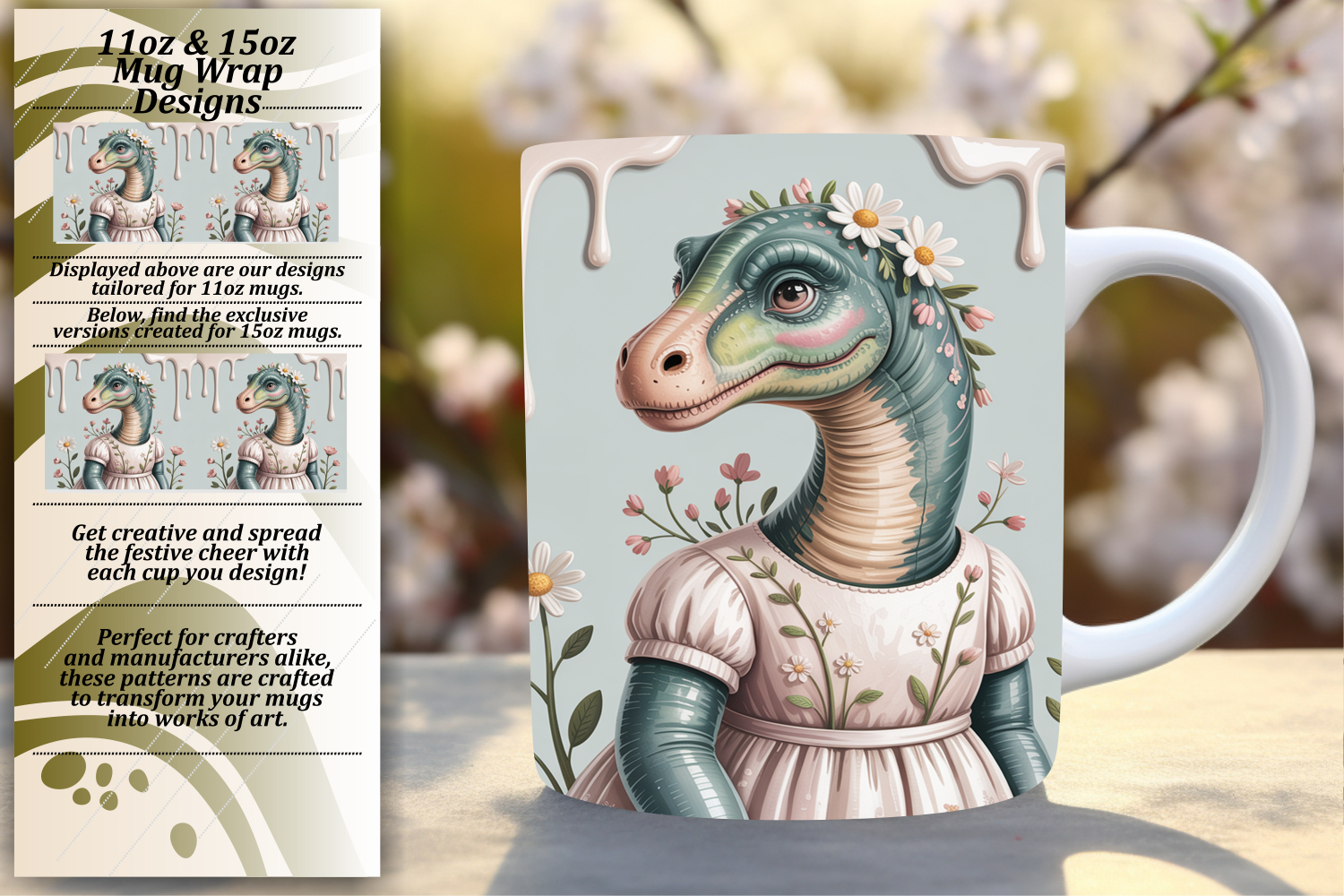 LUSH 15oz PNG Mug Wrap Template , Cute Dino example image 1