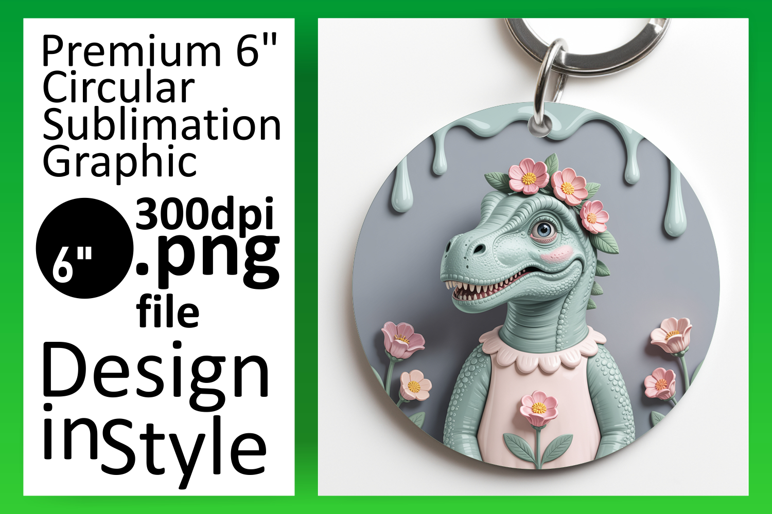 Dynamic Round Design for Sublimation , Cute Dino