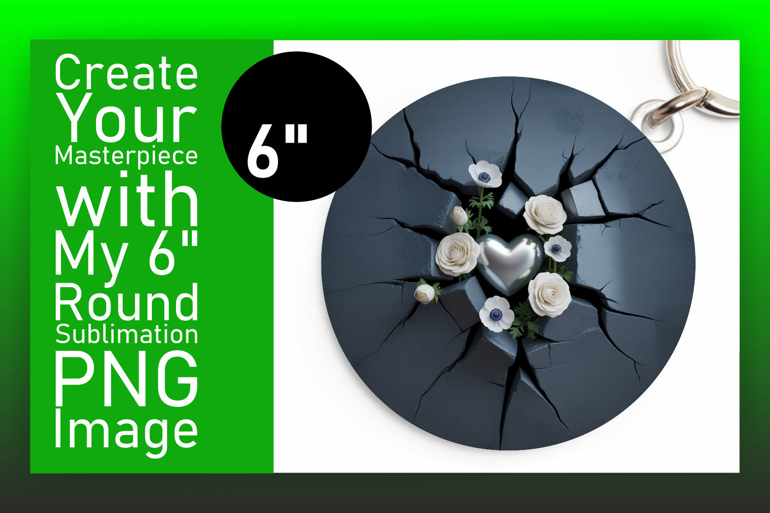 Lovely Round Design Sublimation Template , 3D Heart example image 1