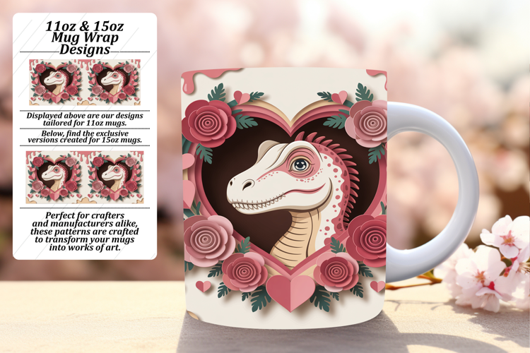 RADIANT PNG Mug Wrap Design 15oz , Cute Dino